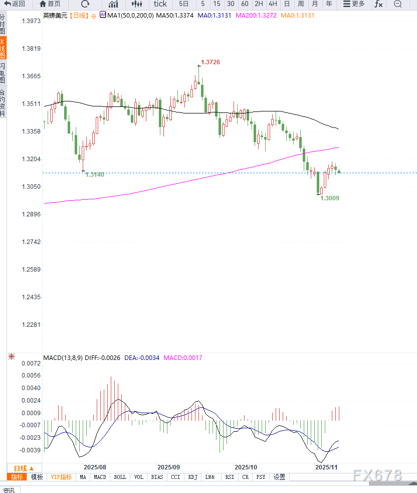 若汇价跌破1.3120支撑位,可能进一步下探1.3050区域;若能重返1.3200上方,则有望重启反弹。