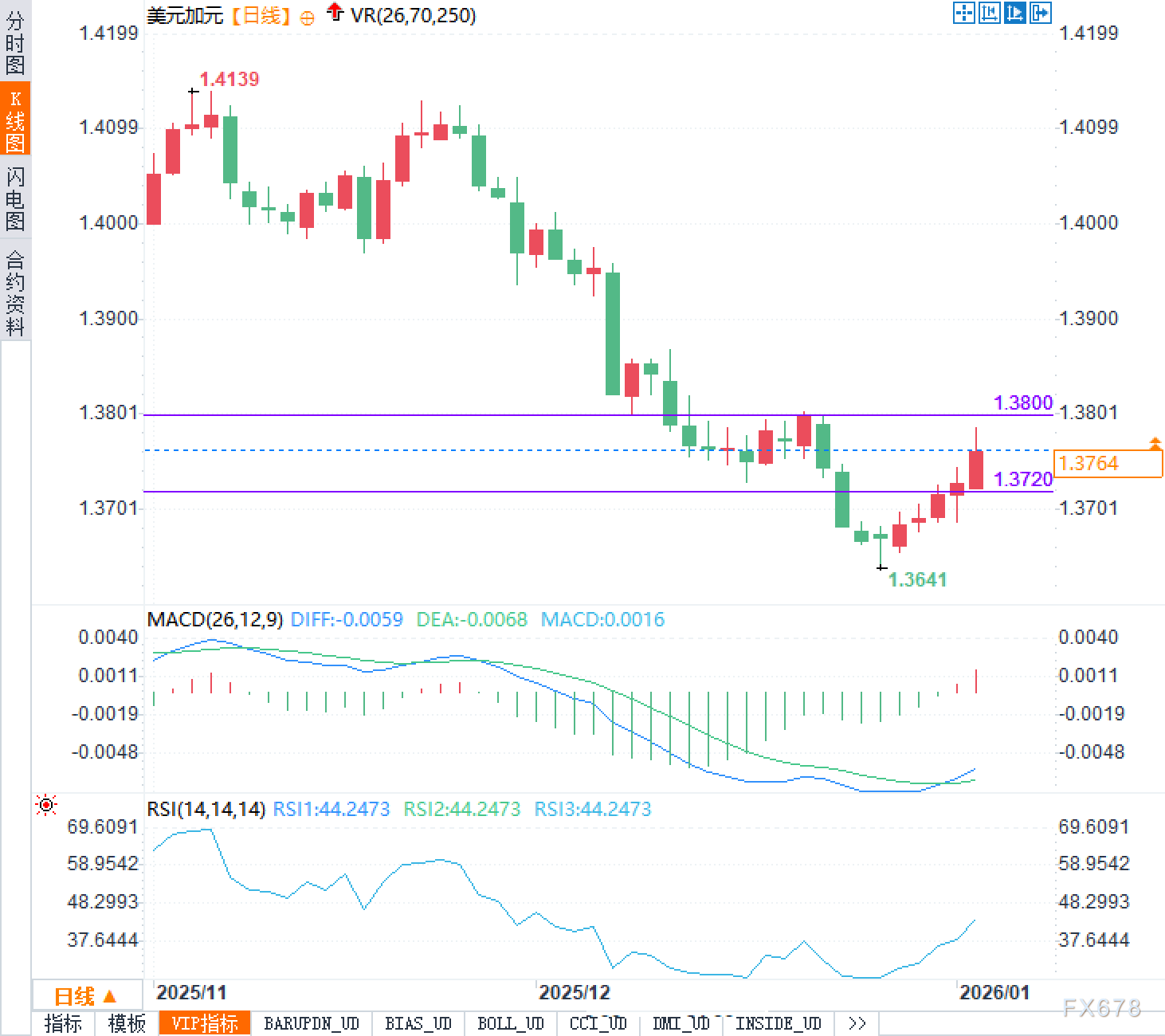 综合来看,美元兑加元当前的回升更多体现为下行趋势中的阶段修复:油价回落削弱加元支撑,美元在避险与流动性属性下保持韧性,但美联储降息预期又对美元上方空间形成约束。1.3720与1.3800附近的多空博弈,反映了宏观叙事尚未收敛的现实。